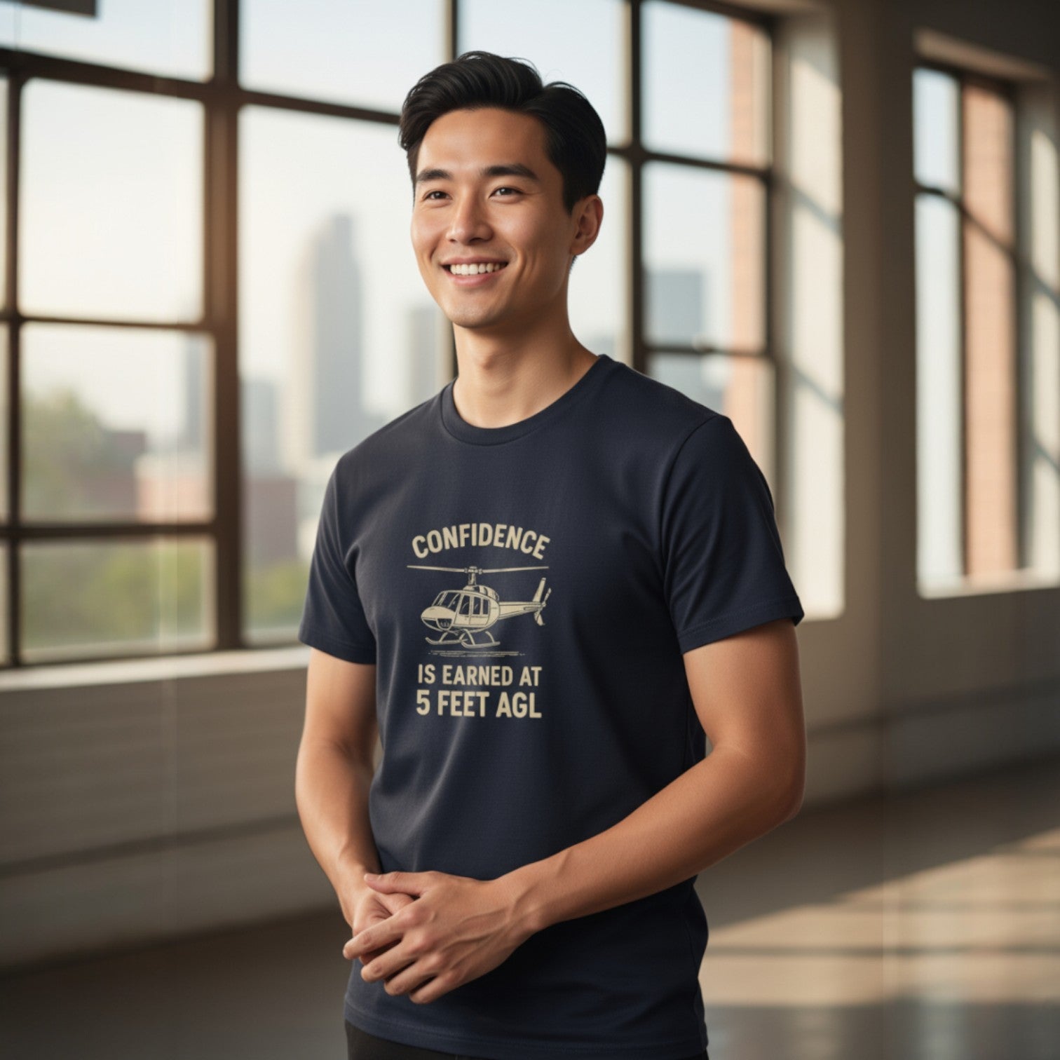Flying low takes more than guts—it takes skill, precision, and absolute trust in your machine. The Confidence Is Earned at 5 Feet AGL tee captures that mindset, pairing bold aviation-inspired text with a classic, comfortable fit. Made from breathable 100% cotton, it’s designed to look sharp in the cockpit or on the ground. Whether you’re a pilot, a student, or simply rotor-obsessed, this shirt is a reminder that true confidence is earned, not given.
