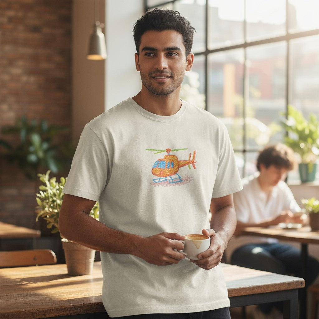 Every pilot started with a dream — and maybe a box of crayons. The Crayon AStar tee captures that childhood wonder with a bright, sketchbook-style take on the iconic helicopter. Equal parts aviation and imagination, it’s a reminder that every flight starts with creativity.