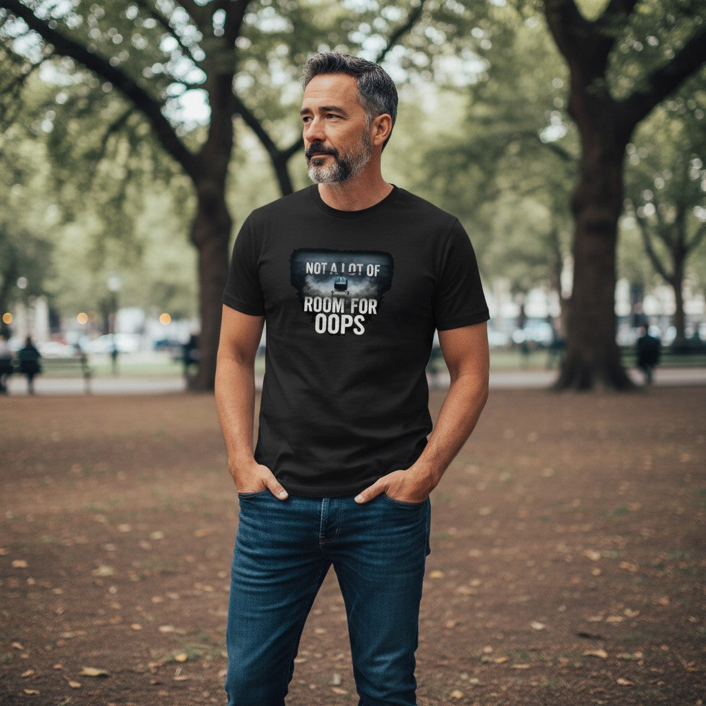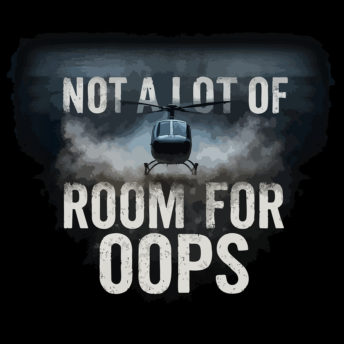 This tee captures the truth every helicopter pilot knows — in aviation, there’s not a lot of room for oops.