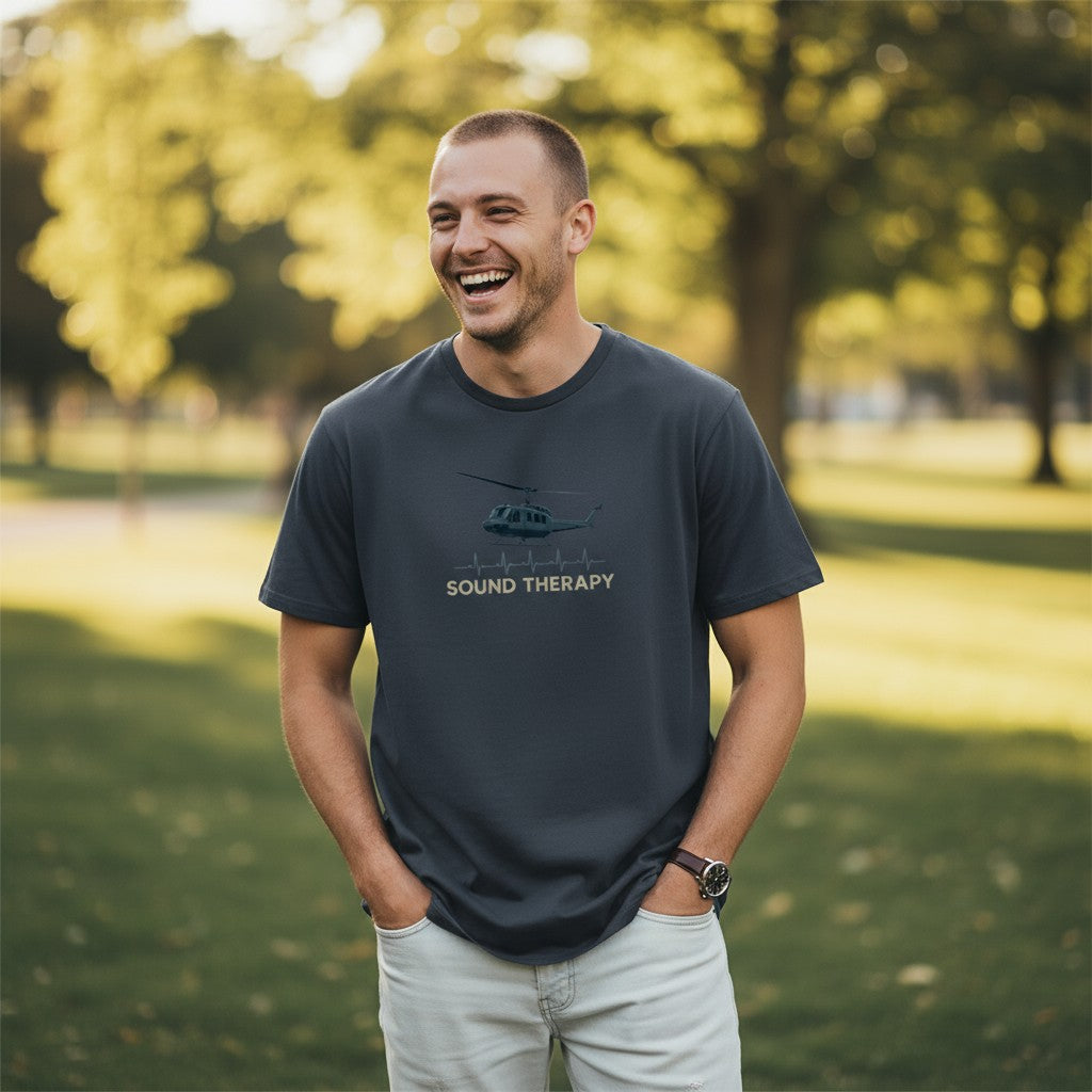 The Sound Therapy tee celebrates the unmistakable hum that makes every helicopter pilot’s heart skip a beat. Whether you’re on the flight line, in the hangar, or daydreaming about your next flight, this shirt says what every rotorhead knows deep down — that there’s no better sound on earth.