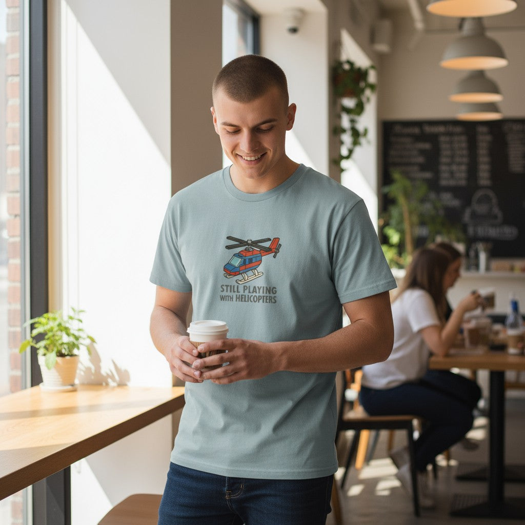 The Still Playing With Helicopters tee is a tribute to every pilot who turned childhood fascination into a lifelong obsession. Playfully vintage with a wink of truth, it’s a reminder that growing up doesn’t mean giving up the fun — it just means your toys got rotor blades and a turbine.