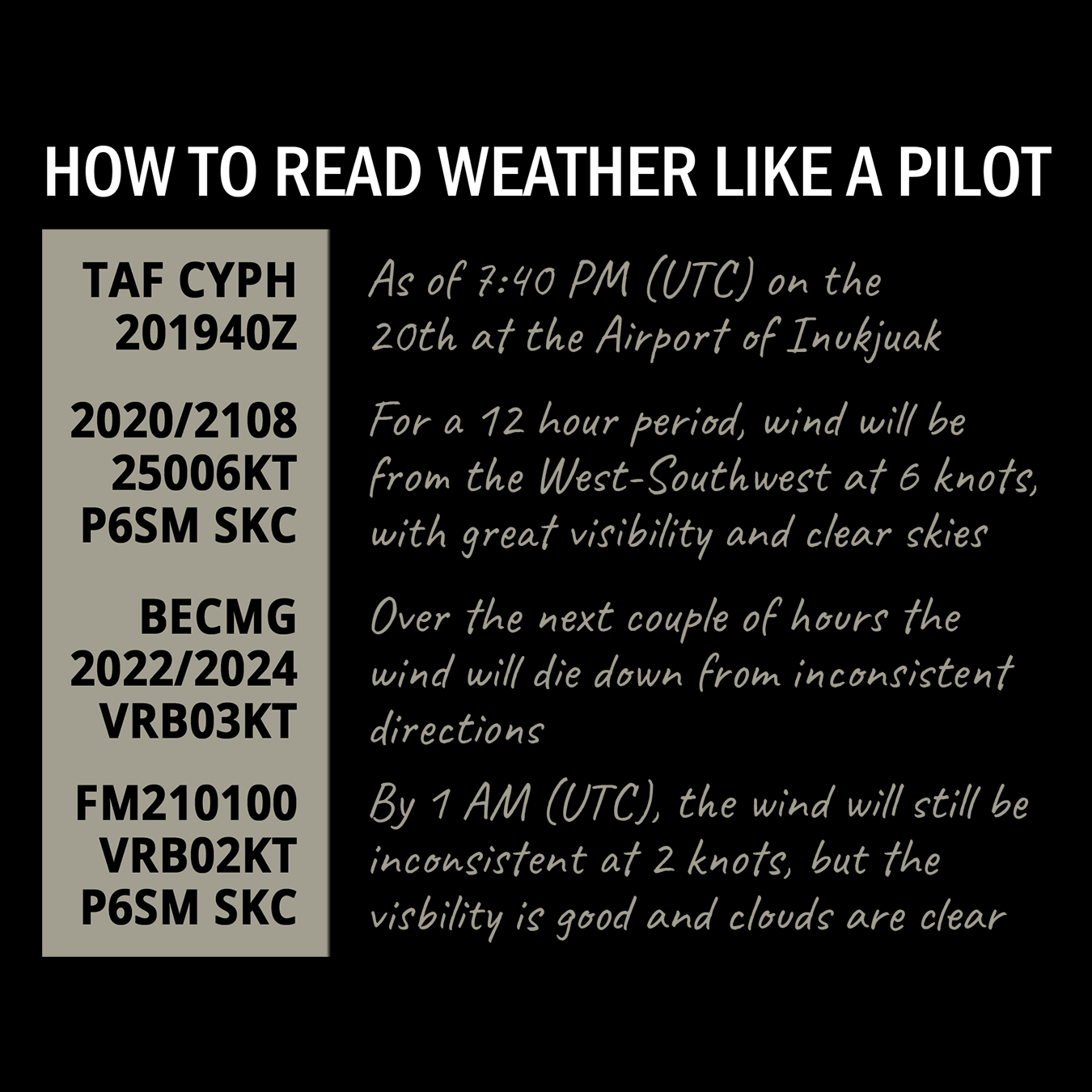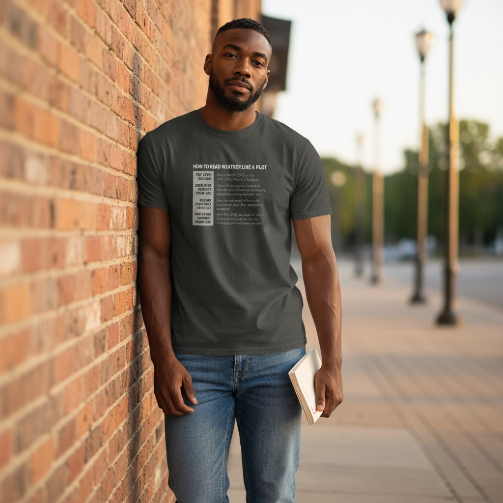 If you know, you know. This design takes a classic aviation TAF (Terminal Aerodrome Forecast) and breaks it down pilot-style — decoding what looks like alphabet soup into the perfect VFR forecast: clear skies, good visibility, and smooth flying ahead.