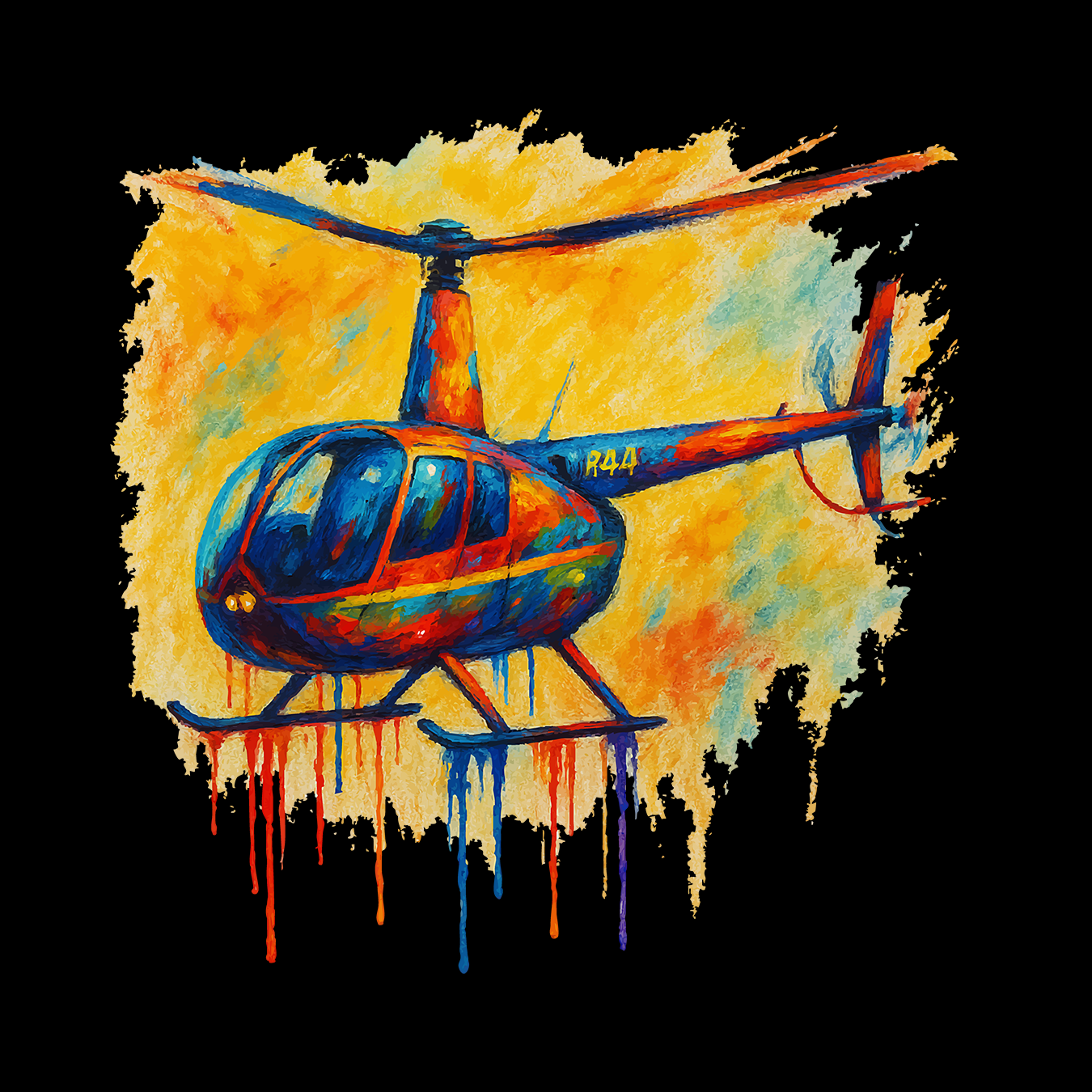 Where art meets altitude. This vivid, painterly design captures the spirit of flight with a helicopter bursting out of a splash of color and creativity. The dripping paint adds a sense of motion and energy—like aviation itself refusing to stand still. Perfect for pilots, dreamers, and anyone who sees flying as an art form.