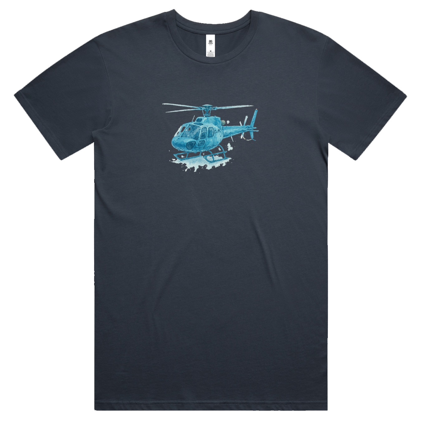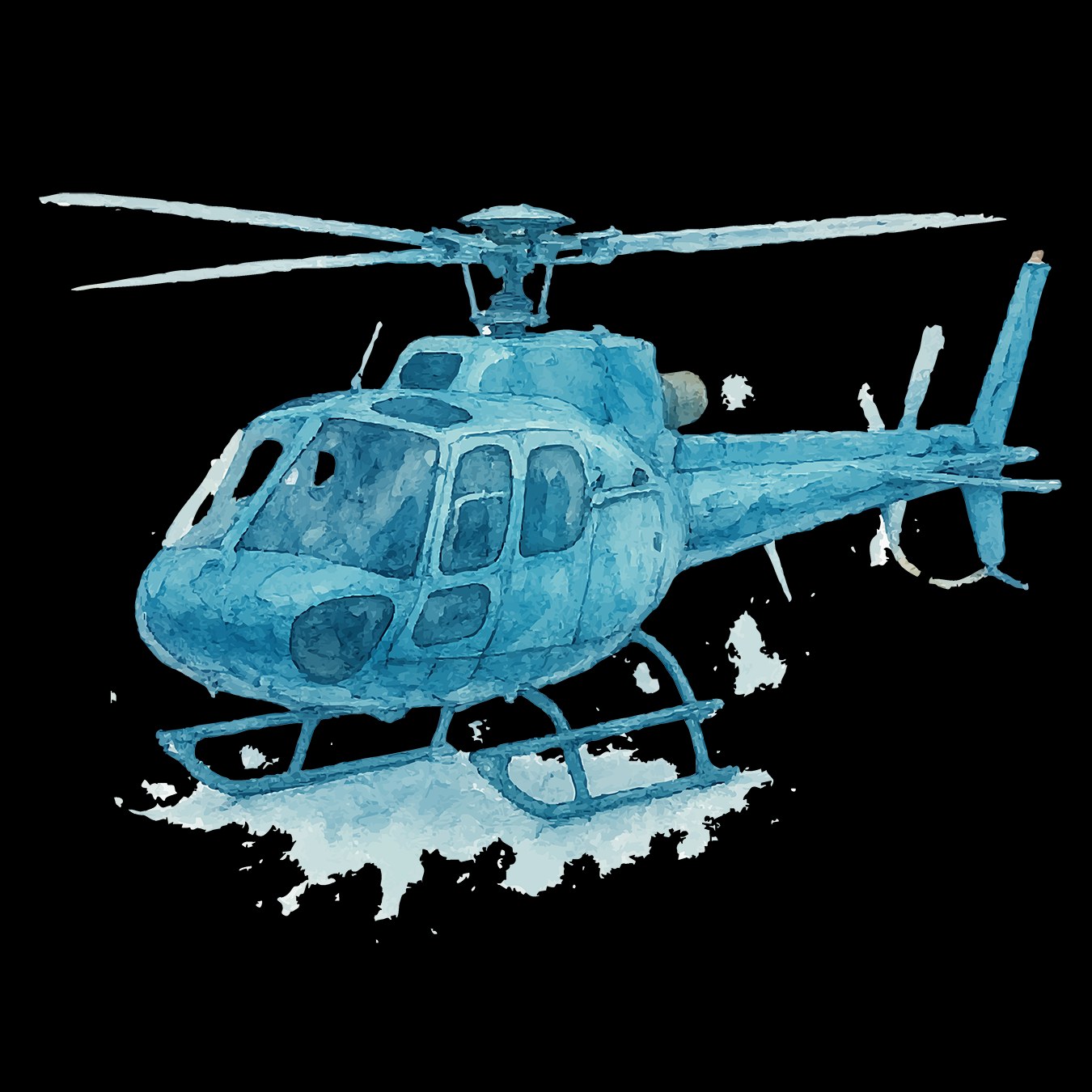 A tribute to one of the most iconic helicopters in the sky, captured in a soft watercolor style. The Airbus AStar (AS350) comes to life in cool, fluid tones — a balance of engineering and artistry that mirrors what flying feels like on a clear, calm day.